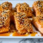 These Panko Sesame Crusted Salmon Bites are crispy, flavorful, and perfect as an appetizer or snack. Cubes of fresh salmon are coated in a crunchy panko and sesame seed crust, pan-fried to golden perfection, and served with a zesty homemade spicy mayo dipping sauce. With a spicy, smoky, and tangy flavor profile, these bites are sure to impress your guests or elevate your weeknight meals.