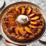 This Peach Cobbler Upside Down Cake is a delightful dessert combining juicy, cinnamon-spiced peaches arranged at the bottom of a buttery cake, topped with a crumbly layer and baked to golden perfection. Finished with homemade whipped cream infused with vanilla and a hint of nutmeg, this cake is perfect served warm or chilled for a comforting treat.