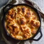 This Peach Cobbler with Vanilla Ice Cream is a delightful dessert featuring juicy, fresh peaches baked under a golden, fluffy biscuit topping. Infused with warm cinnamon and nutmeg spices and a hint of vanilla, it pairs perfectly with creamy vanilla ice cream for a comforting treat that’s easy to prepare and perfect for any season.