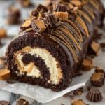 This Peanut Butter Cup Cake Roll is a luscious dessert combining a light chocolate sponge cake rolled with a creamy, sweet peanut butter filling. Finished with a drizzle of melted chocolate and a dusting of powdered sugar, this treat perfectly balances rich chocolate and peanut flavors in an elegant presentation, ideal for special occasions or indulgent everyday enjoyment.