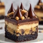 - Add Butter and Chocolate Chips: Drizzle the melted butter evenly over the chocolate cake mix. Then sprinkle the remaining chopped peanut butter cups and the milk chocolate chips evenly on top.