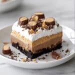 Peanut Butter Lasagna is a delicious no-bake dessert featuring layers of crushed chocolate sandwich cookies, creamy peanut butter, rich chocolate pudding, and fluffy whipped topping. This easy-to-make layered dessert combines the flavors of chocolate and peanut butter for a perfect indulgent treat that requires no oven time and is ideal for summer or anytime you crave a sweet, creamy delight.