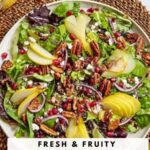 A refreshing and vibrant Pear Pomegranate Salad featuring mixed baby greens, thinly sliced ripe pears, juicy pomegranate arils, glazed pecans, and crumbly feta cheese, all brought together with a sweet and tangy Maple Dijon Vinaigrette. Perfect for a light lunch or as a colorful side dish.