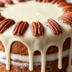 This Pecan Praline Cake with Creamy Drip Glaze is a luscious dessert combining moist layers of pecan-studded cake with a rich, buttery praline glaze. Toasted pecans in the batter add crunch and nutty flavor, while the creamy brown sugar glaze coats the cake beautifully, topped with whole and chopped pecans for added texture and visual appeal. Perfect for special occasions or holiday gatherings, this cake offers a sweet, indulgent treat with a classic Southern twist.