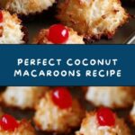 These Perfect Coconut Macaroons are chewy, golden-brown treats made with shredded coconut and sweetened condensed milk, enhanced with vanilla and almond extracts. They are crisp on the outside and moist inside, with an optional chocolate dip and cherry garnish for added indulgence. Ideal for dessert lovers craving a coconut delight.