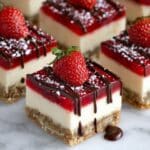 - Chilling the Bars: Cover the cooled cheesecake bars with plastic wrap and refrigerate for at least 4 hours or preferably overnight to set fully.