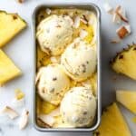 This vegan Pina Colada Ice Cream combines fresh pineapple, creamy coconut milk, and a hint of rum to create a luscious tropical frozen treat. Made without dairy, it features a smooth, creamy texture achieved by cooking the pineapple puree with cornstarch, then churning in an ice cream maker. Toasted coconut flakes add a delightful crunch, making it a perfect dessert for warm days or anytime you crave a tropical escape.