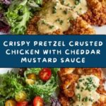 This Pretzel Crusted Chicken recipe offers a crispy and flavorful twist on a classic chicken dish, featuring crunchy salted pretzels as the coating. Served with a rich and tangy mustard cheddar sauce and garnished with fresh parsley, it’s a satisfying meal perfect for a weeknight dinner or a special occasion.