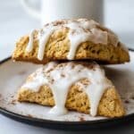 These Pumpkin Scones are a perfectly spiced autumn treat with tender, flaky layers and a sweet pumpkin glaze. Made with pumpkin puree and warm pumpkin pie spice, they deliver cozy fall flavors in every bite. Ideal for breakfast or an afternoon snack, this recipe combines a tender dough with a light, sweet glaze for an irresistible fall dessert.