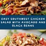 This Quick Southwest Chicken Salad is a vibrant, protein-packed dish featuring shredded chicken breast mixed with fresh vegetables, black beans, and corn, all tossed in a zesty Greek yogurt dressing with lime and Southwest spices. Perfect for a light, refreshing lunch or dinner, it combines wholesome ingredients without any cooking required beyond preparing the chicken, making it an easy and nutritious meal.