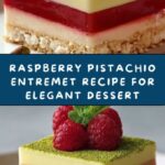 This exquisite Raspberry Pistachio Entremet is a multi-layered French dessert featuring a delicate pistachio sponge, a vibrant raspberry jelly, and a luscious pistachio mousse. Perfect for special occasions, this entremet combines the nutty flavor of pistachios with the tartness of fresh raspberries, elegantly garnished with crushed pistachios and fresh raspberries.