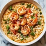 This Red Curry Risotto with Shrimp is a delightful fusion of Thai and Italian flavors, combining creamy arborio rice with aromatic red curry paste, rich coconut milk, and succulent shrimp. Perfect as a comforting main course, this dish balances spicy, tangy, and creamy elements for a unique culinary experience.