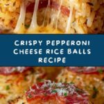 Delicious and crispy Rice Balls with Cheese and Pepperoni, featuring a flavorful blend of cooked rice, Parmesan, mozzarella, and savory pepperoni. These golden-fried Italian-American appetizers are perfect for parties or a tasty snack, served warm with marinara sauce for dipping.