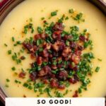 9. Serve: Ladle the soup into bowls, garnish with crumbled bacon and chopped chives on top, and serve warm.