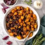 This Roasted Butternut Squash & Sweet Potatoes with Rosemary recipe is a flavorful and comforting side dish perfect for any season. Tender cubes of butternut squash and sweet potatoes are roasted alongside red onions, garlic, and fresh herbs, resulting in a beautifully caramelized, savory dish that’s easy to prepare and pairs well with a variety of main courses.