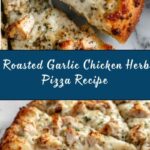 For a special occasion, serve your Roasted Garlic Chicken and Herb Pizza Recipe on a wooden pizza peel or large platter. Garnish with whole roasted garlic cloves and fresh herb sprigs alongside to showcase those flavorful ingredients. Cutting into small, appetizer-sized squares also turns this pizza into a delightful party finger food.