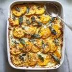 - Assemble the gratin: Preheat the oven to 375°F (190°C). In a buttered baking dish, arrange half of the sliced butternut squash in an even layer. Pour half of the sage cream sauce over the squash, then sprinkle with a third of the Parmesan cheese. Repeat layers with remaining squash, sauce, and finish with the remaining Parmesan cheese on top.