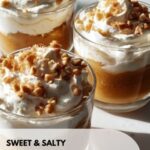 Whipped cream adds a light, airy contrast to the rich pudding, while crushed nuts provide a satisfying crunch that brightens every bite. A sprinkle of flaky sea salt on top accentuates the salted caramel flavor, adding a beautiful finishing touch that’s both elegant and delicious.