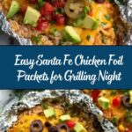 Delicious and easy-to-make Santa Fe Chicken Foil Packets packed with flavorful chicken breasts, black beans, corn, bell peppers, and salsa, all grilled or baked to perfection. Topped with melted cheese and customizable with vibrant garnishes like sour cream, guacamole, and jalapeños, this meal is perfect for a quick, healthy dinner.