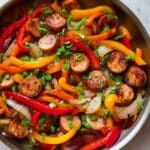 This Sausage and Peppers Skillet recipe combines spicy andouille sausage with vibrant bell peppers and onions for a quick, flavorful one-pan meal. Perfect for a weeknight dinner, this dish is hearty, easy to prepare, and packed with savory, aromatic flavors from garlic and Italian seasoning.