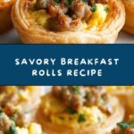 These Savory Breakfast Rolls combine fluffy scrambled eggs, crispy bacon or sausage, melted cheddar cheese, and fresh green onions all wrapped in flaky puff pastry or crescent roll dough. Perfect for a quick breakfast or brunch, they bake to golden perfection and are easy to prepare ahead of time.