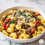 - Combine Tortellini and Seasoning: Add the drained tortellini to the skillet with the seasoned meat and sprinkle the Italian seasoning over the mixture. Mix well to combine all ingredients.