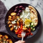 - Assemble and Serve: Arrange the cooked chicken, roasted peppers, tzatziki sauce, diced cucumber, red onion, kalamata olives, and feta cheese on a large platter or sheet pan. Provide flatbreads for everyone to build their own pitas, bowls, or salads, enjoying a variety of salty, briny, crunchy, and creamy flavors.