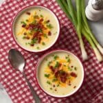 This simple and comforting potato soup features tender chunks of potatoes simmered in savory chicken broth, enriched with creamy Philadelphia cream cheese, smoky bacon, and a hint of smoked paprika. Topped with crisp bacon crumble, green onions, and melty cheese, it’s a perfect hearty meal for chilly days.