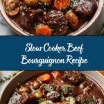This Slow Cooker Beef Bourguignon is a hearty, comforting French stew featuring tender beef chuck simmered in red wine and beef broth with bacon, mushrooms, carrots, and baby potatoes. Perfect for an easy, hands-off meal that delivers rich flavors after hours of slow cooking.