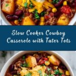 If you’re craving a hearty, comforting meal that brings together the best of smoky, cheesy, and savory flavors, the Slow Cooker Cowboy Casserole Recipe is exactly what your weeknight dinners need. This dish is a dream come true for busy cooks because it combines simple ingredients into a satisfying, layered casserole that cooks low and slow to develop incredible depth. With tender ground beef seasoned to perfection, colorful beans and corn for texture and color, topped with crispy golden tater tots, and finished with melty cheddar cheese, it’s a guaranteed crowd-pleaser that feels like a warm hug on a plate.