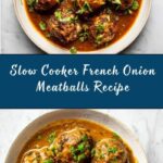 Delicious Slow Cooker French Onion Meatballs featuring tender meatballs simmered in a rich, caramelized onion and French onion soup sauce, topped with melted Gruyère or Swiss cheese. Perfect for a comforting appetizer or main course that’s easy to prepare and packed with flavor.
