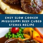 This Slow Cooker Mississippi Beef Cubed Steaks recipe offers a simple and flavorful way to prepare tender beef with a tangy and buttery sauce. Combining au jus gravy, ranch seasoning, butter, and pepperoncini peppers, this recipe yields juicy, melt-in-your-mouth steaks with a deliciously rich and slightly spicy flavor profile, perfect for an easy weeknight dinner.