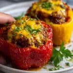 - Rest and Serve: Let the stuffed peppers rest for 5 minutes after removing from the oven to allow juices to settle. Garnish with freshly chopped parsley if desired, then serve warm.