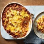 - Assemble the Casserole: Grease a 9×13-inch baking dish. Spread half of the noodle and cheese mixture evenly on the bottom. Top with half of the meat sauce. Repeat with the remaining noodles and meat sauce layers. Sprinkle the remaining cheddar cheese uniformly over the top layer.
