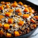 This Southwest Black Bean Skillet is a vibrant, hearty one-pan meal combining tender rice, sweet potatoes, black beans, and zesty green chilies. Infused with bold chili powder and brightened with fresh lime juice and cilantro, it’s topped with melted cheddar cheese for a comforting finish. Ready in just 25 minutes, this nutritious and satisfying dish is perfect for a quick weeknight dinner or flavorful meal prep.