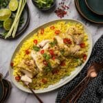 - Finish the Dish: Once cooked, fluff the rice and vegetables gently with a fork. Stir in the juice of half a lemon to brighten the flavors. Slice the rested chicken thighs and serve them atop the fragrant vegetable rice. Garnish with freshly chopped cilantro or parsley for a fresh finish.