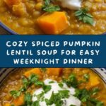 This Spiced Pumpkin Lentil Soup is a hearty and flavorful dish combining creamy pumpkin puree with tender red lentils and warming spices. Perfect for a cozy meal, it balances sweetness from pumpkin and coconut milk with aromatic cumin, coriander, and cinnamon, enhanced by a hint of cayenne for a gentle heat. Easy to prepare on the stovetop, this soup offers a nutritious and comforting option for fall and winter nights.