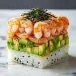 This Spicy Shrimp Sushi Stacks recipe offers a delicious twist on traditional sushi by layering cooked shrimp mixed with spicy sriracha mayo atop seasoned sushi rice, avocado, and cucumber. These elegant stacks are easy to prepare, making a perfect appetizer or light meal with vibrant flavors and a visually appealing presentation.