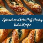 Delicious and flaky Spinach and Feta Puff Pastry Twists, perfect for a savory appetizer or snack. These golden-brown twists combine tender spinach, creamy feta, and aromatic spices wrapped in buttery puff pastry, baked to crisp perfection.