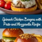 These Spinach Chicken Burgers with Pesto and Mozzarella are a delicious and healthy twist on the classic burger. Juicy ground chicken patties are blended with fresh spinach, garlic, and fragrant basil pesto, then topped with melted mozzarella cheese for a creamy finish. Perfect for a quick weeknight dinner or a flavorful weekend grill, these burgers come together easily and offer a fresh, vibrant flavor that everyone will love.