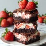Delight in these luscious Strawberry Brownies, combining the fruity flavors of strawberry cake mix with the chewiness of classic brownies. Topped with a sweet vanilla glaze, this recipe offers a simple and quick dessert perfect for any occasion.