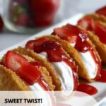 These Strawberry Cheesecake Tacos are a delightful twist on traditional tacos, featuring crispy graham cracker-coated tortilla shells filled with a creamy cheesecake filling and topped with a luscious strawberry compote. Perfect for a unique dessert that’s both visually appealing and bursting with sweet, tangy flavors.