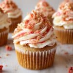 - Assemble: Generously frost the cooled cupcakes with the vanilla frosting. Sprinkle the crunch topping evenly over the frosting, pressing gently so it adheres well, adding a delightful crunch and burst of strawberry flavor to each cupcake.