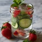 A refreshing and healthy infused water recipe combining fresh strawberries, cucumbers, lime, and mint leaves. Perfect for hydration with a natural fruity and citrus flavor, ideal for warm days or anytime you want a delicious flavored water without added sugars.