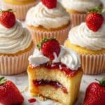 These Strawberry Filled Cupcakes offer a delightful combination of moist vanilla cupcakes filled with a luscious homemade strawberry filling and topped with a creamy vanilla buttercream frosting. Perfect for any occasion, they balance fresh fruity sweetness with rich, fluffy cake.
