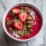 This Strawberry Protein Smoothie Bowl is a refreshing and nutrient-packed breakfast or snack option that combines the natural sweetness of strawberries and banana with the creamy texture of cauliflower and almond milk. Enhanced with vanilla protein powder and superfood toppings like chia seeds, granola, and pumpkin seeds, it provides a balanced boost of protein, fiber, and healthy fats for sustained energy.