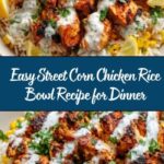 This Street Corn Chicken Rice Bowl is a flavorful and vibrant meal combining tender grilled chicken, charred corn with a smoky spice blend, and a creamy lime sauce served over a bed of rice. Topped with crumbled queso fresco and fresh cilantro, it’s an easy, satisfying dish perfect for a quick weeknight dinner or casual lunch.