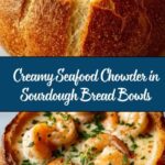 This Stuffed Seafood Bread Bowl is a comforting and flavorful dish featuring a creamy seafood stew packed with shrimp, crab meat, and optional clams. The stew is thickened with a buttery roux and enriched with cream, seasoned with Old Bay and a touch of cayenne for gentle heat. Served inside a crisp, toasted sourdough bread bowl, it’s perfect for a cozy meal that combines seafood richness with the satisfying crunch of fresh bread.