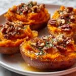 - Prepare Sweet Potatoes for Stuffing: Once the sweet potatoes are done baking, carefully slice them open lengthwise. Use a fork to gently fluff the inside flesh, creating space for the filling.