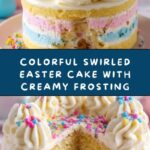 This Swirled Easter Cake is a vibrant and festive dessert perfect for celebrating the spring season. A moist white cake base is beautifully swirled with pastel-colored batters, creating a stunning marbled effect. Topped with smooth, creamy vanilla frosting and decorated with pastel sprinkles or candies, this cake is as delightful to look at as it is to eat.